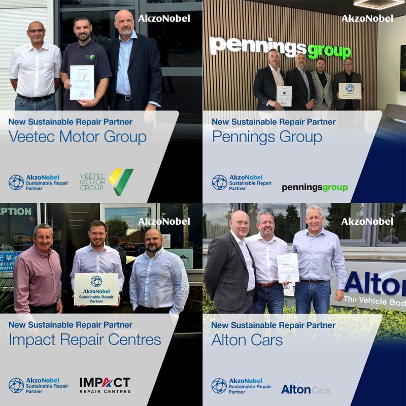 Four more major vehicle refinishes businesses, Pennings, Alton Cars, Veetec and Impact are joining AkzoNobel’s Sustainable Repair Network, a program launched last year to help customers in the EMEA region on their journey to becoming more sustainable and efficient.